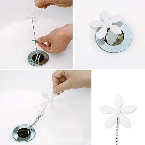Si adatta perfettamente allo scarico, dotato di una catena e di baffi di gomma che catturano i capelli che ostruiscono i tubi prima che diventino un problema.